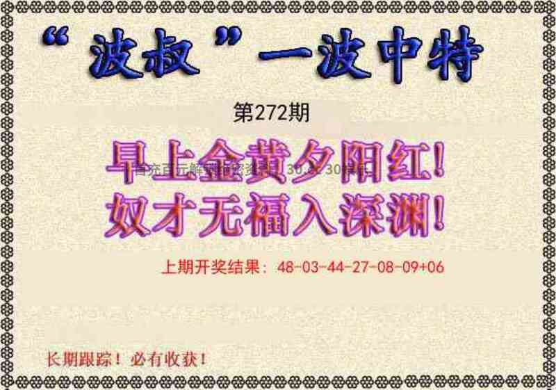 272期:【绝杀三肖】【马猴牛】开:马36错 |