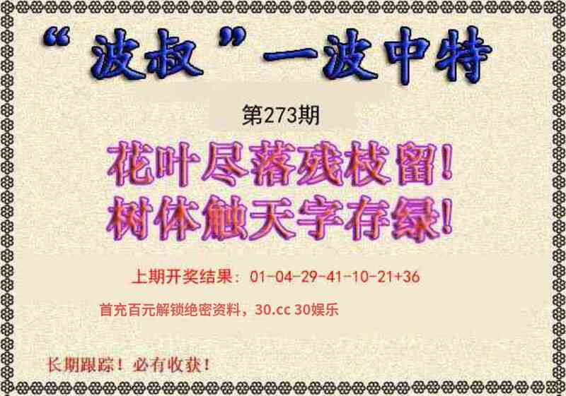 273期:【绝杀三肖】【龙蛇鼠】开:虎04准 |